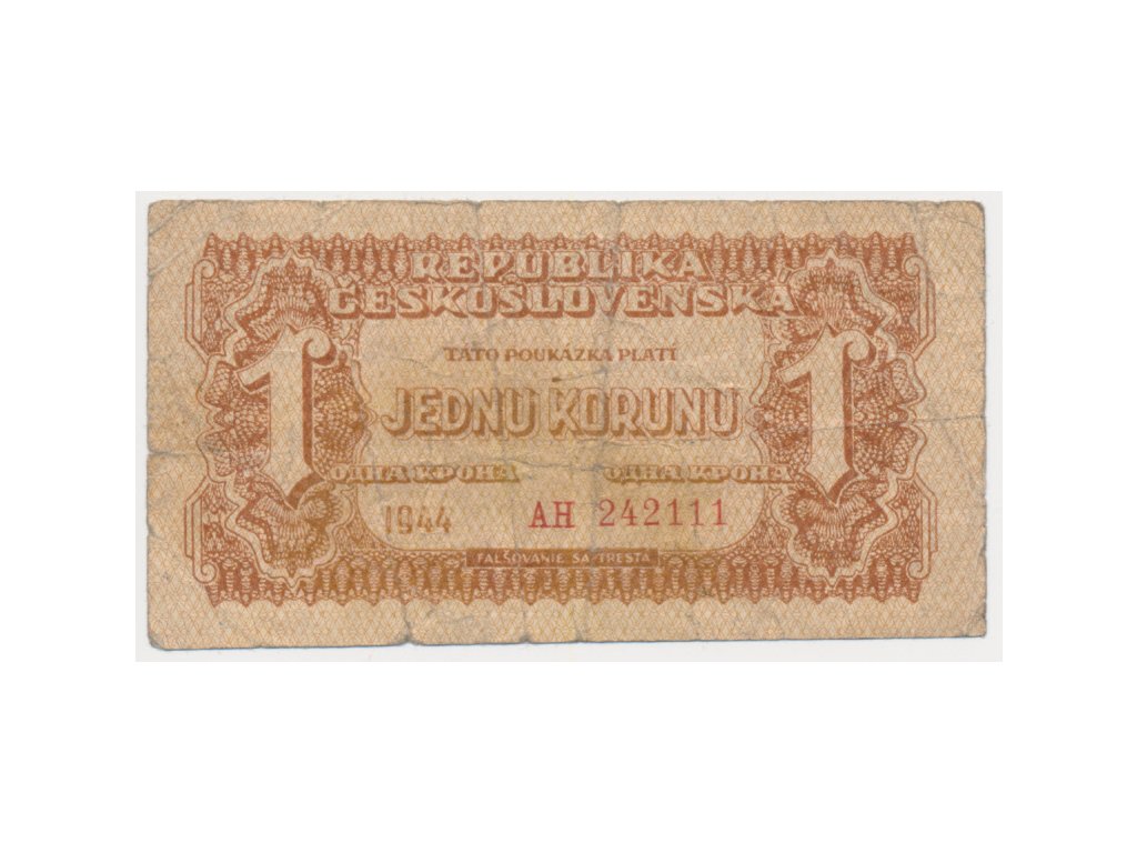 ČSR, 1 Kč, 1944, poukázka, série AH, oběhový stav