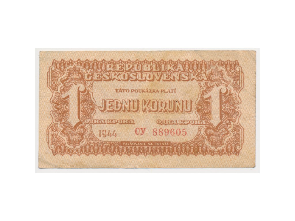 ČSR, 1 Kč, 1944, poukázka, série OY, oběhový stav