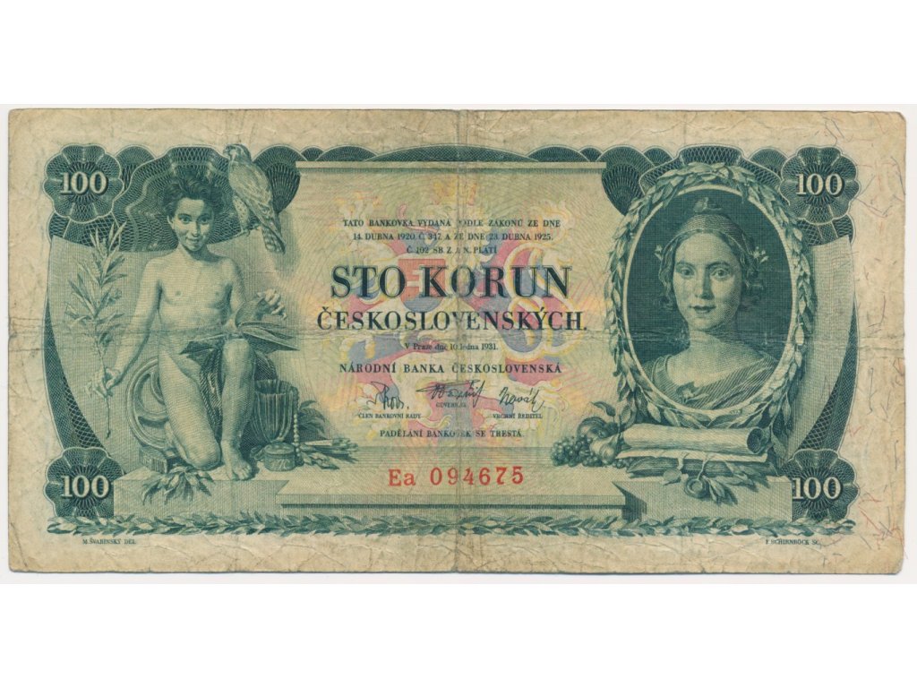 ČSR, 100 Kč, 1931, série Ea, neperforovaná, oběhový stav