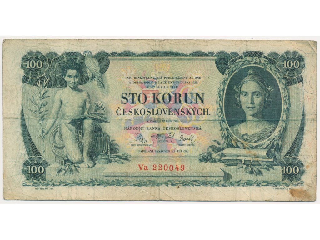 ČSR, 100 Kč, 1931, série Va, neperforovaná, oběhový stav
