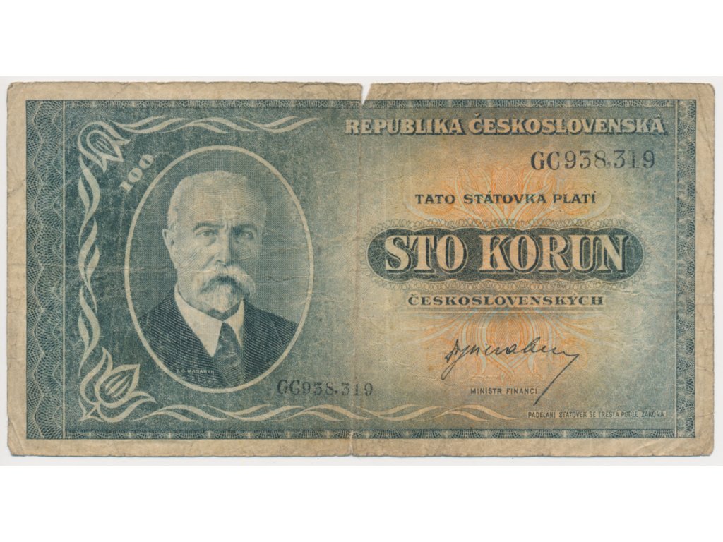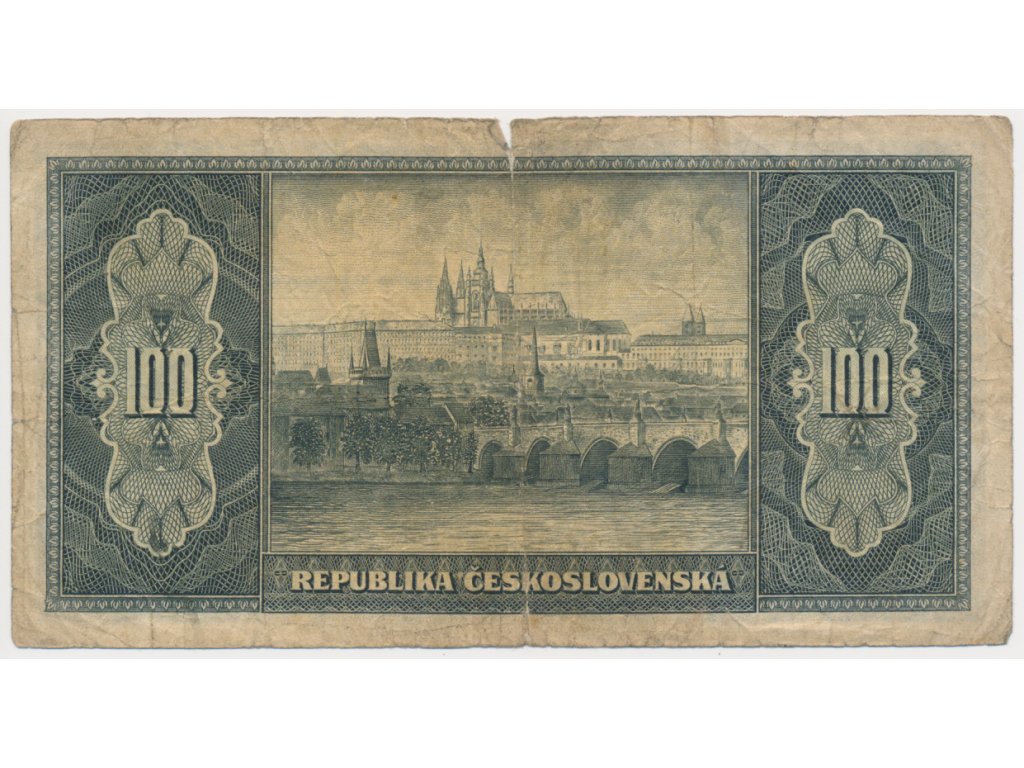 ČSR, 100 Kčs, bez data (1945), série GC, neperforovaná, oběhový stav