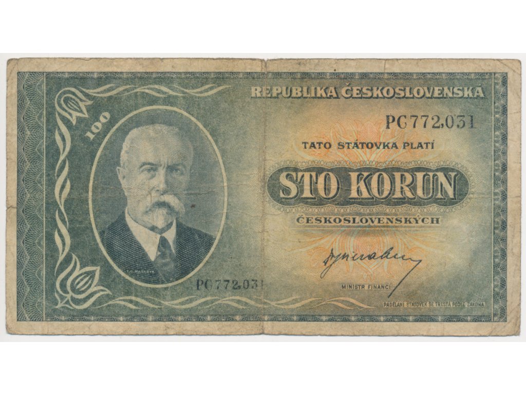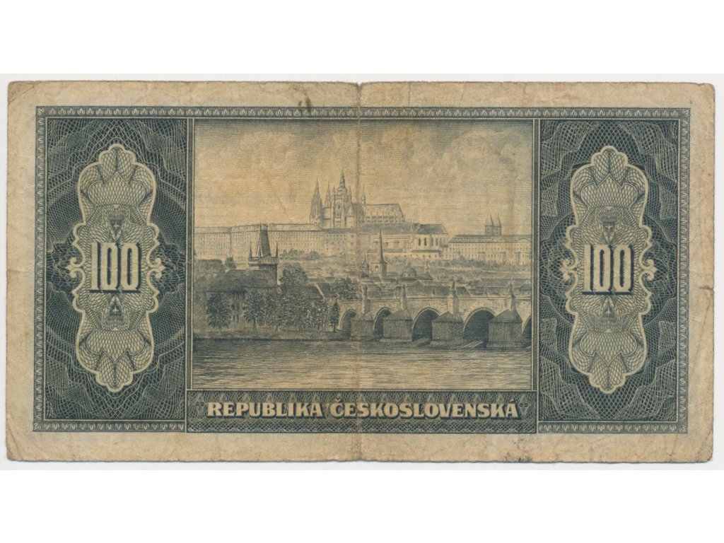 ČSR, 100 Kčs, bez data (1945), série PC, neperforovaná, oběhový stav