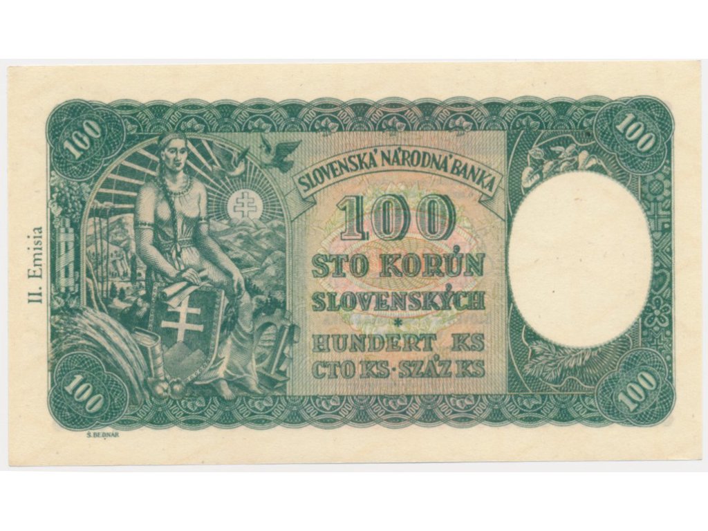 ČSR, 100 Ks, 1940 (kolek 1945), série A10, neperforovaná, stav UNC