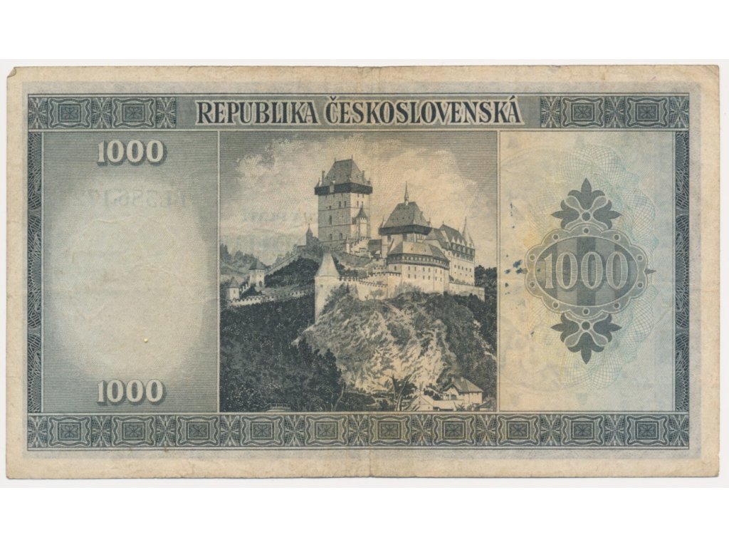ČSR, 1000 Kčs, bez data (1945), série BL, neperforovaná, pěkný oběhový stav...viz autentické foto