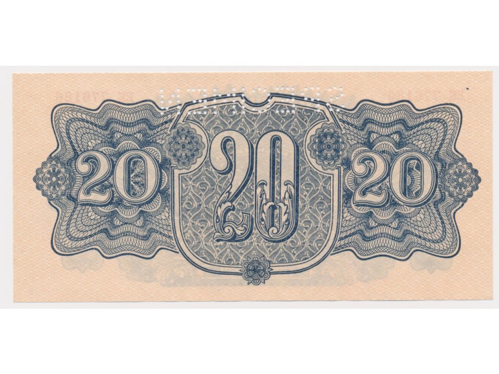 ČSR, 20 K, 1944, série EK, perforovaná, slušná sběratelská jakost 1