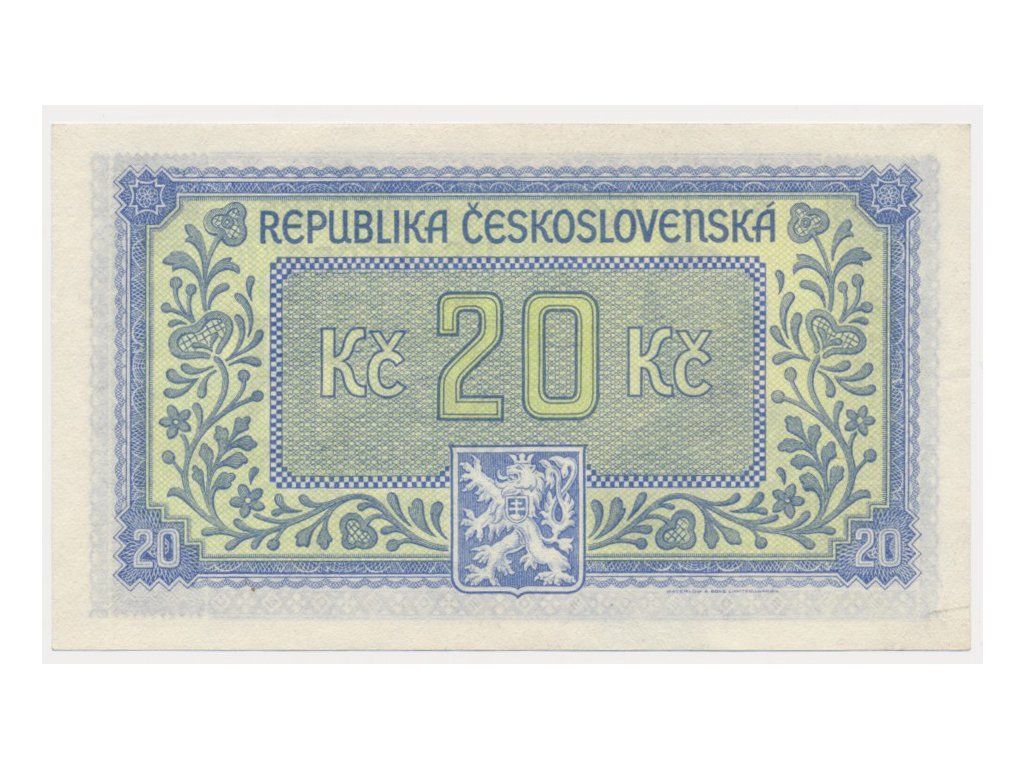 ČSR, 20 K, bez data (1945), série HS, neperforovaná, stav UNC
