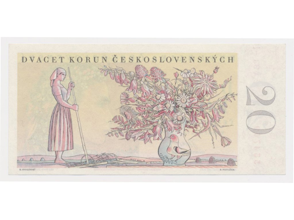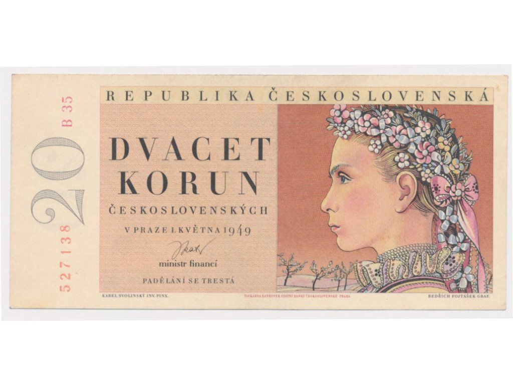 ČSR, 20 Kčs, 1949, série B 35, neperforovaná, luxusní sběratelská jakost UNC