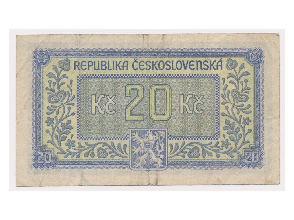 ČSR, 20 Kčs, bez data (1945), série KT, neperforovaná, slušný oběhový stav