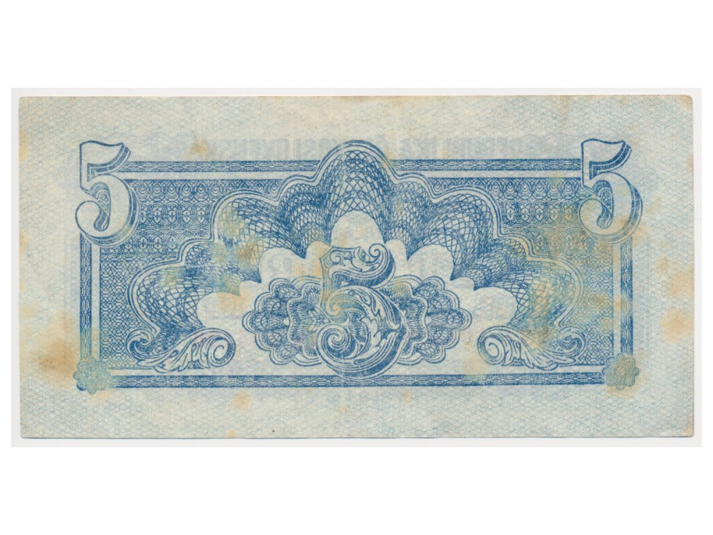 ČSR, 5 Kč, 1944, poukázka, série XA, neperforovaná, oběhový stav
