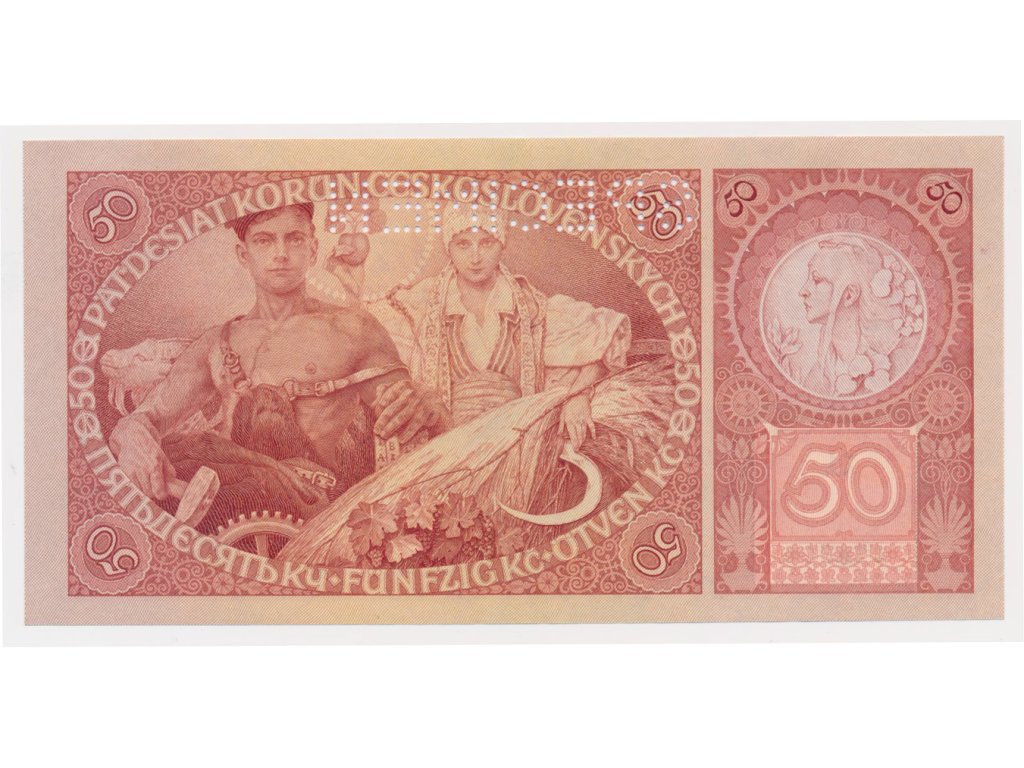 ČSR, 50 Kč, 1929, série Lb, perforovaná, luxusní sběratelská jakost UNC