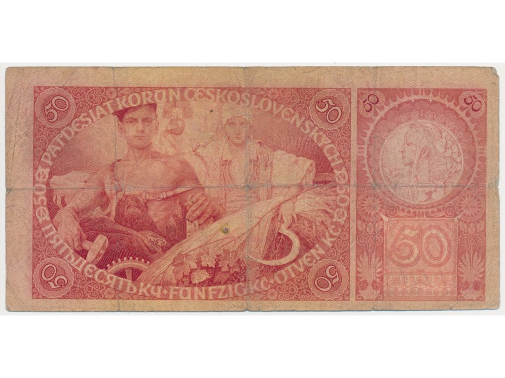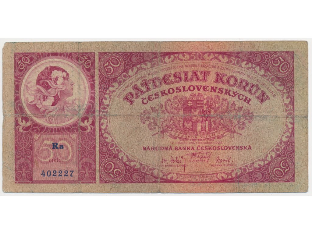 ČSR, 50 Kčs, 1929, série Ra, neperforovaná, oběhový stav