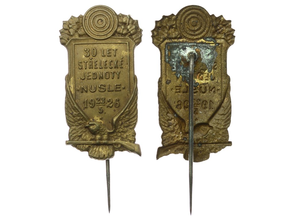 ČSR, AE odznak Střelecká jednota Nusle, 1926, výška na jehle 45mm...viz autentické foto