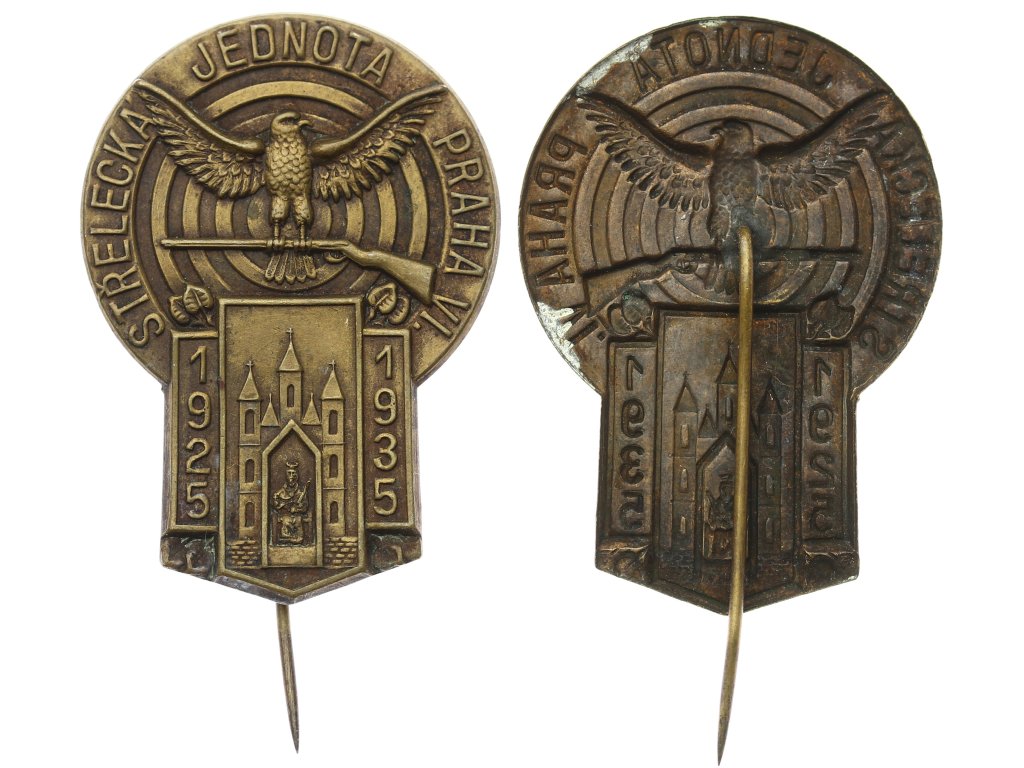 ČSR, AE odznak Střelecká jednota Smíchov, 1935, výška na jehle 55mm...viz autentické foto