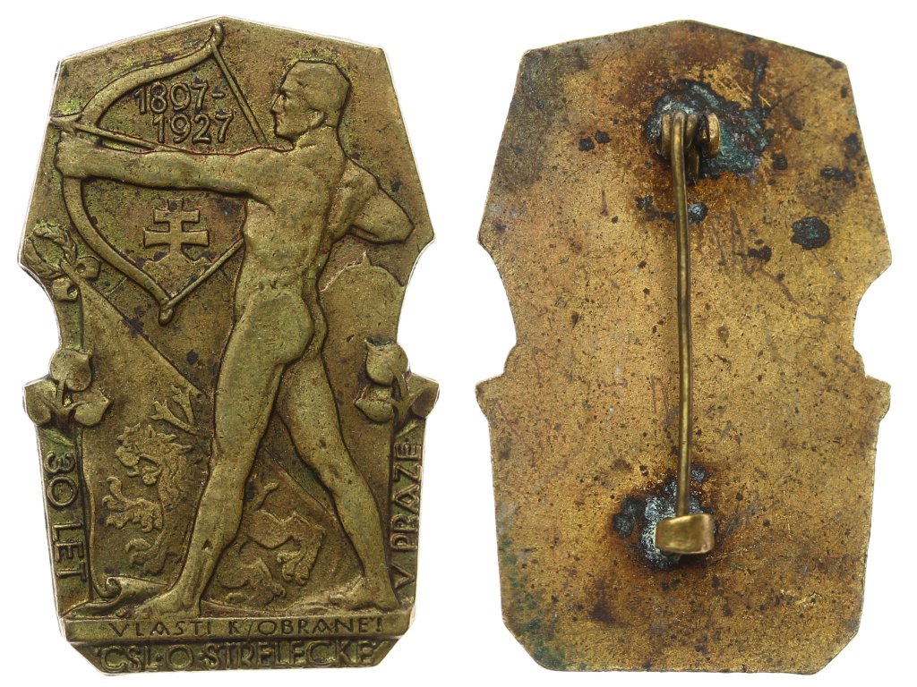 ČSR, AE odznak Vlasti k obraně, 1927, zavírací jehla, rozměr cca 40x30mm