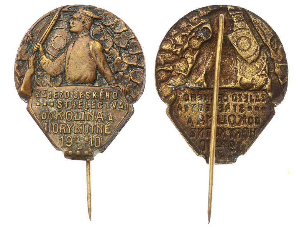 ČSR, AE odznak Zájezd českého střelectva do Kolína a Kutné Hory, 1910, výška na jehle 50mm