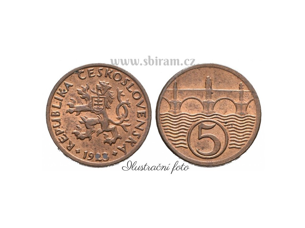 ČSR, mince 5 Haléř, 1927, stav 1/1...viz ilustrační foto