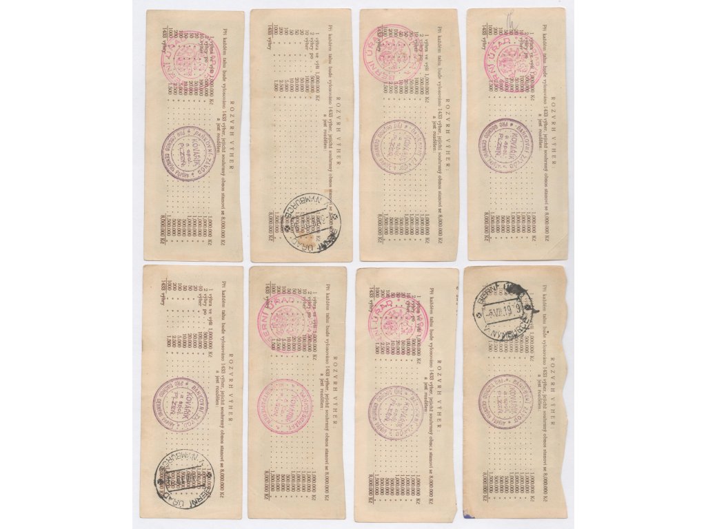 ČSR, sestava 8-mi kusů kupónů z Výherních listů, 1921...viz autentické foto