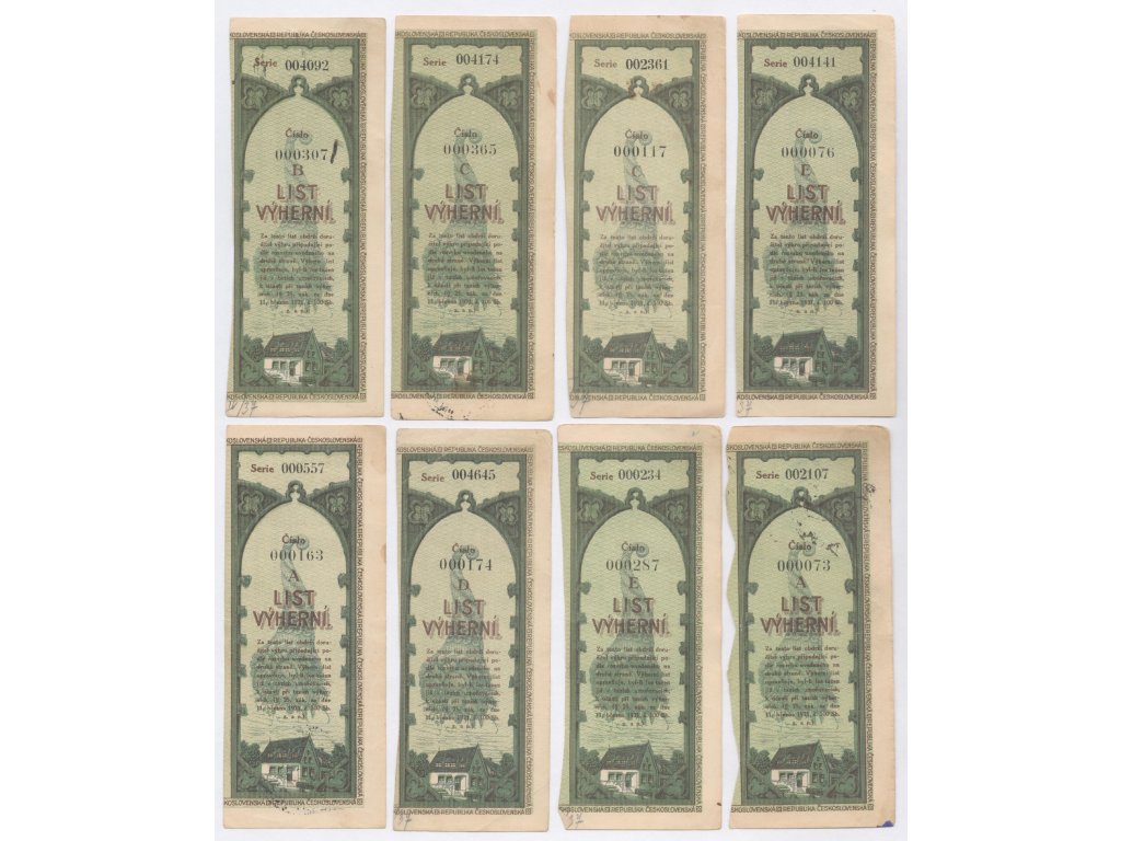 ČSR, sestava 8-mi kusů kupónů z Výherních listů, 1921