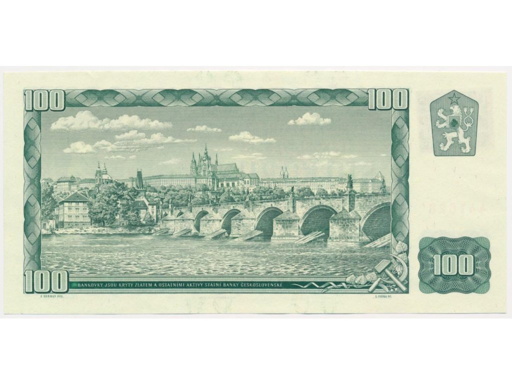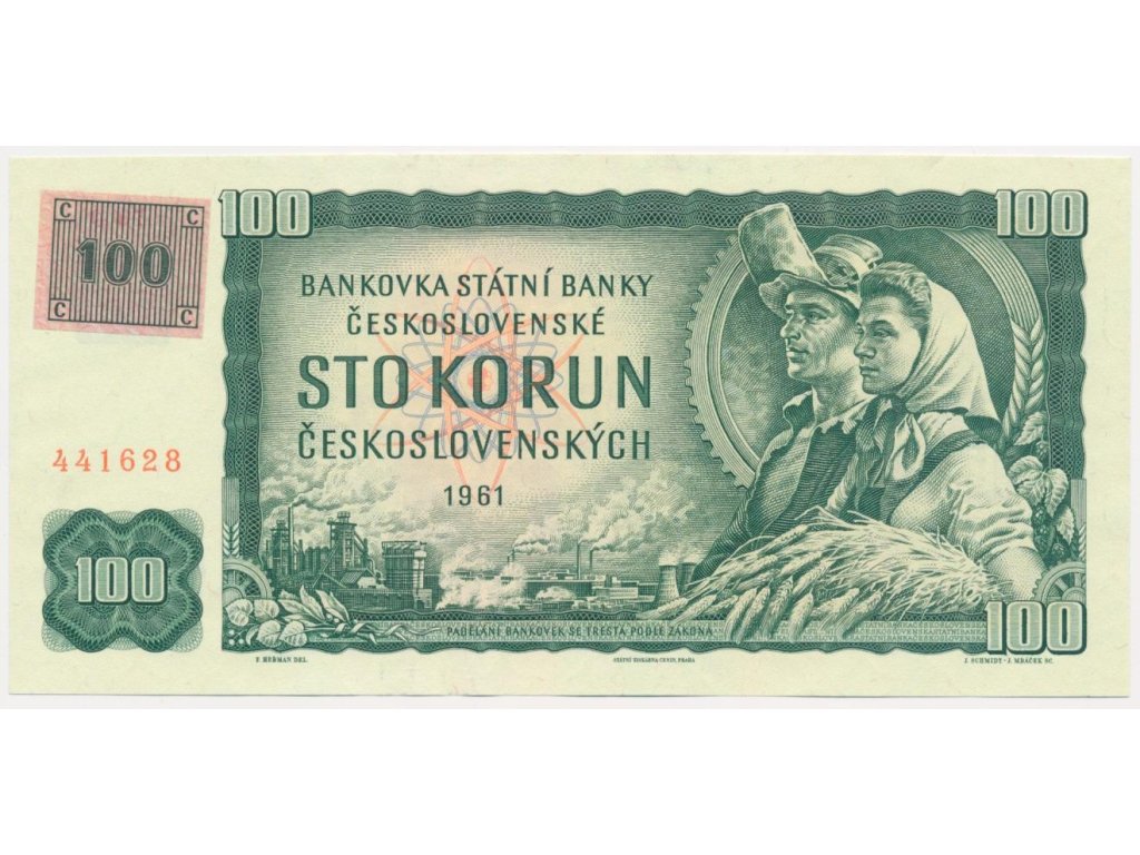 ČSSR, 100 Kč/Kčs, 1961, kolek, série G 83, krásný stav UNC