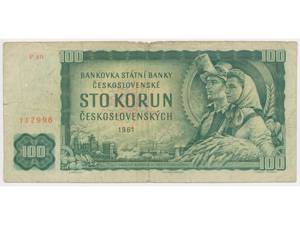 ČSSR, 100 Kčs, 1961, série P 40, neperforovaná, oběhový stav