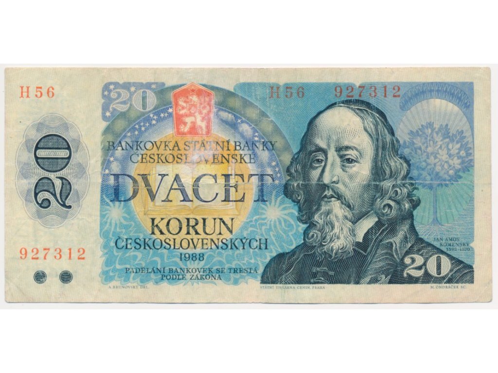 ČSSR, 20 Kč, 1988, série H, neperforovaná, oběhový stav