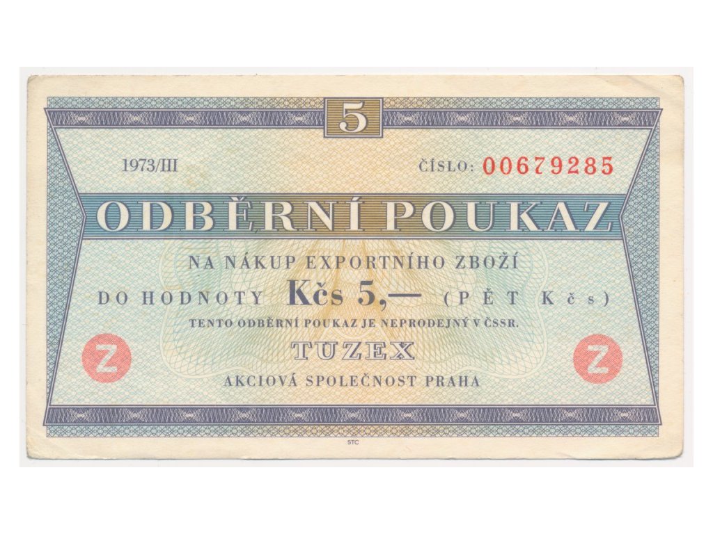 ČSSR, 5 Bonů, 1973/III.., číslo 00679285, písmeno Z, stav 0-...viz autentické foto