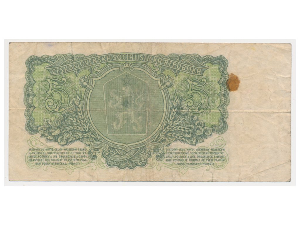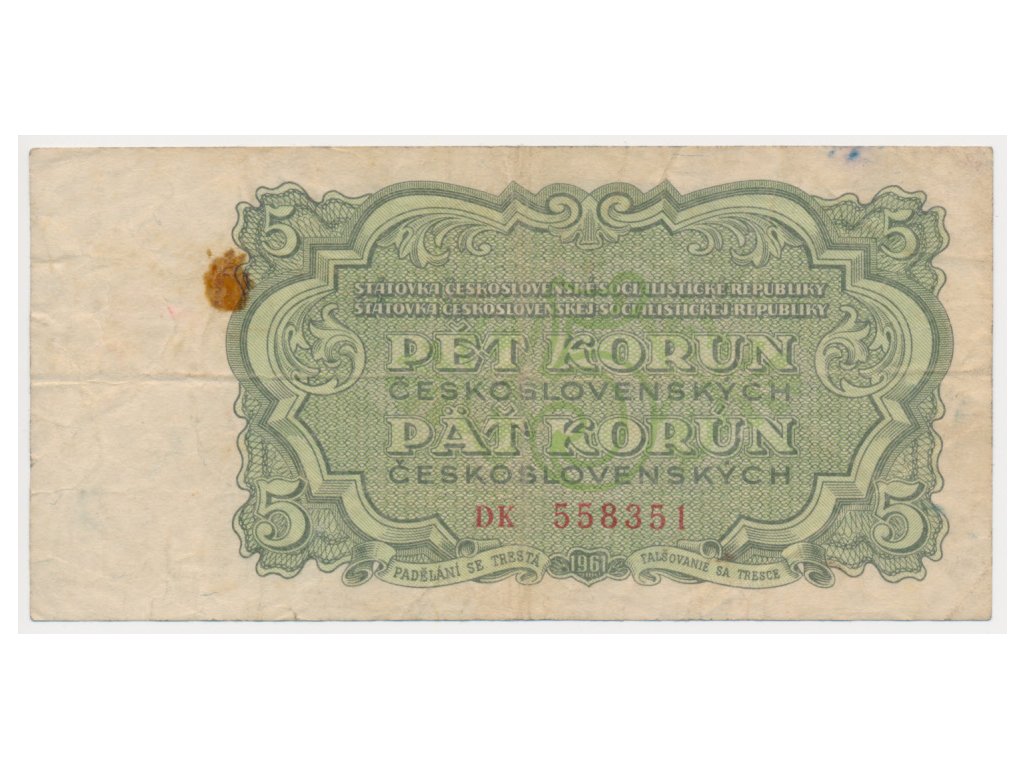 ČSSR, 5 Kčs, 1961, série DK, neperforovaná, oběhový stav