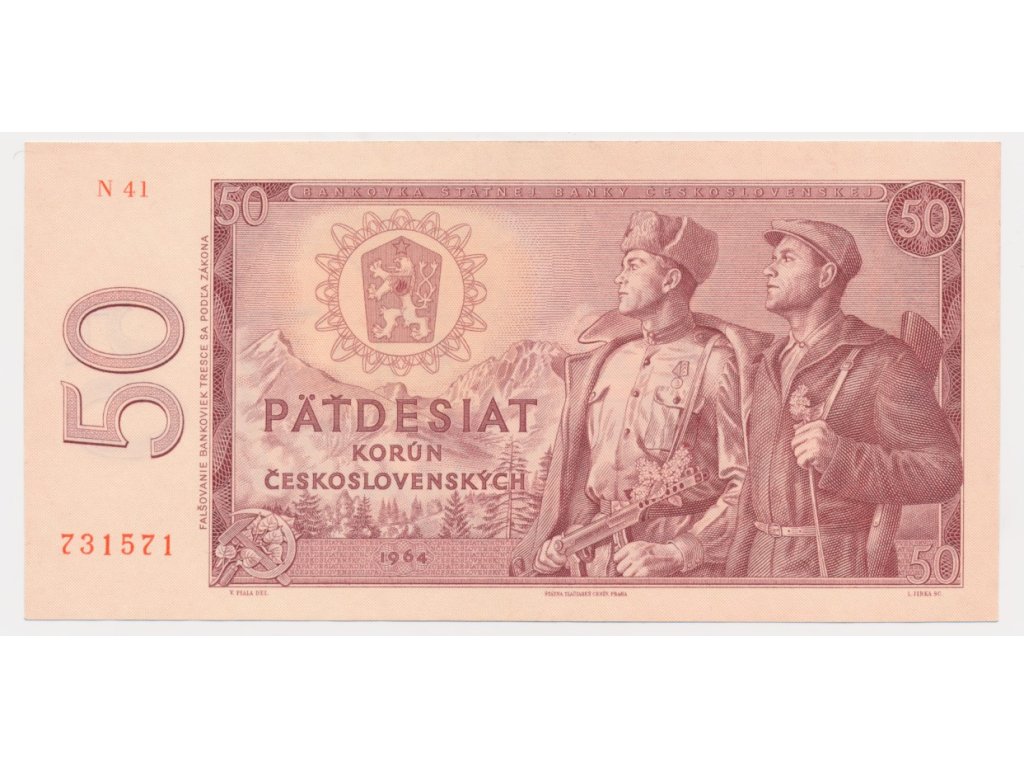 ČSSR, 50 Kčs, 1964, série N 41, neperforovaná, luxusní sběratelská jakost UNC