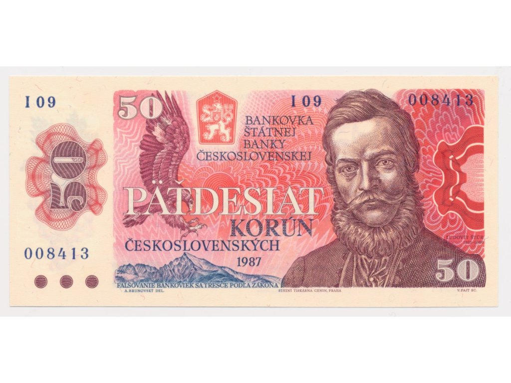 ČSSR, 50 Kčs, 1987, série I 09, neperforovaná, luxusní sběratelská jakost UNC