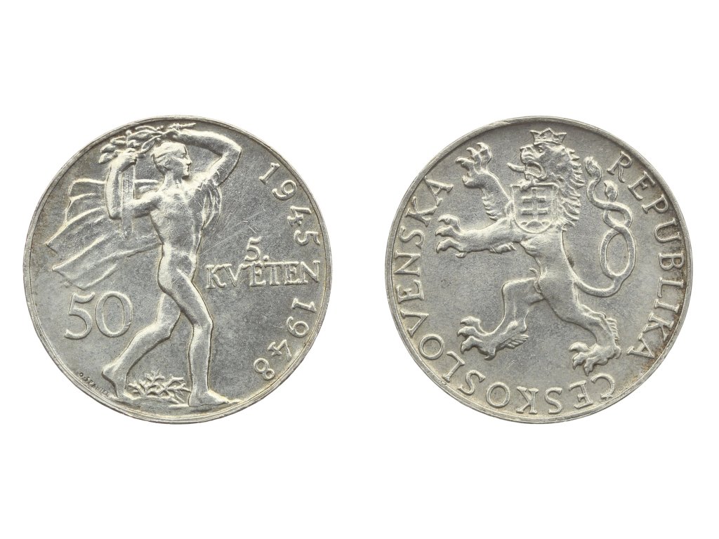 ČSSR, 50 Kčs, Pražské povstání, 1948, Ag (stříbrná) mince, RL v plochách, jemná patina, stav 1/1...viz autentické foto ...
