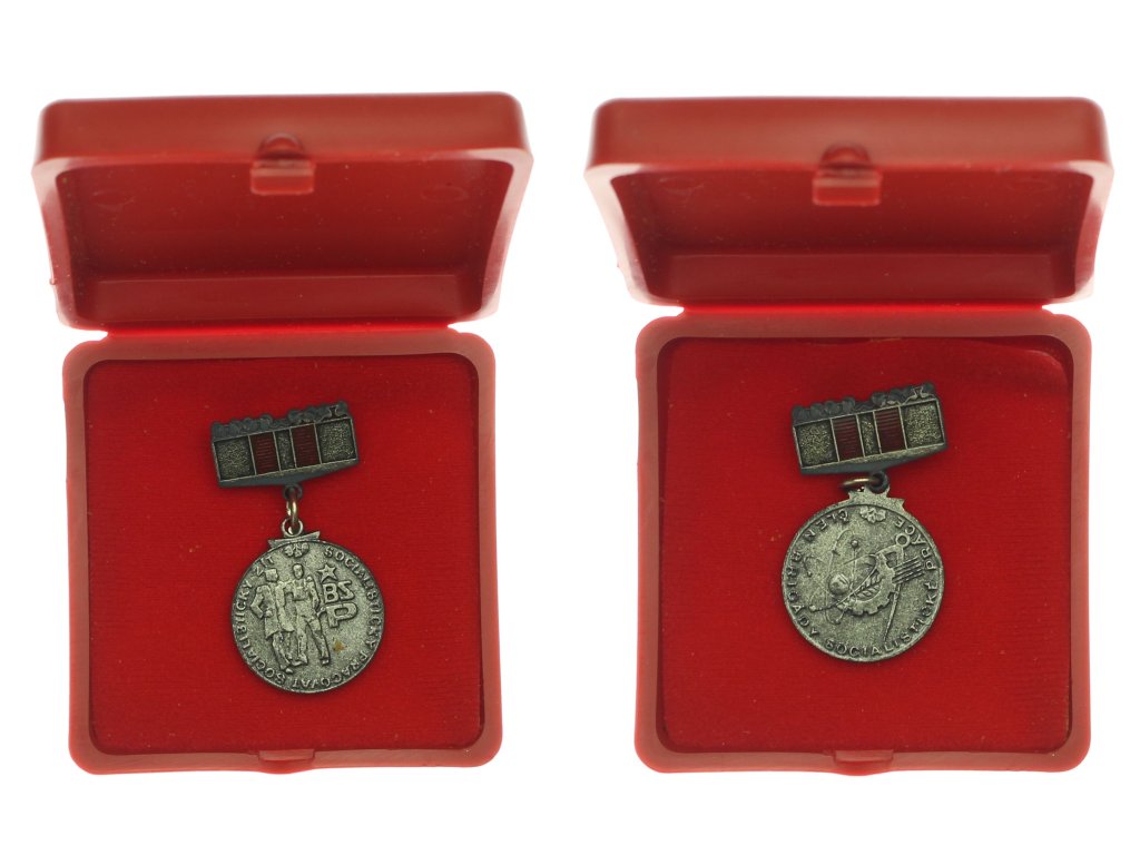 ČSSR, AE dekorace Socialisticky žít, socialisticky pracovat, smalty, stav 1/1, původní etue