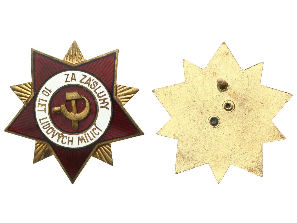 ČSSR, AE dekorace Za zásluhy lidových milicí, smalty, chybí šroub, jinak stav 1/1