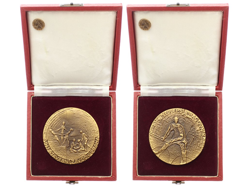 ČSSR, AE medaile Nejlepší pracovník VHJ Stavební závody Praha, signováno VD, cca 1975, průměr 75 mm, původní etue, luxusní sběratelská jakost...viz autentické foto