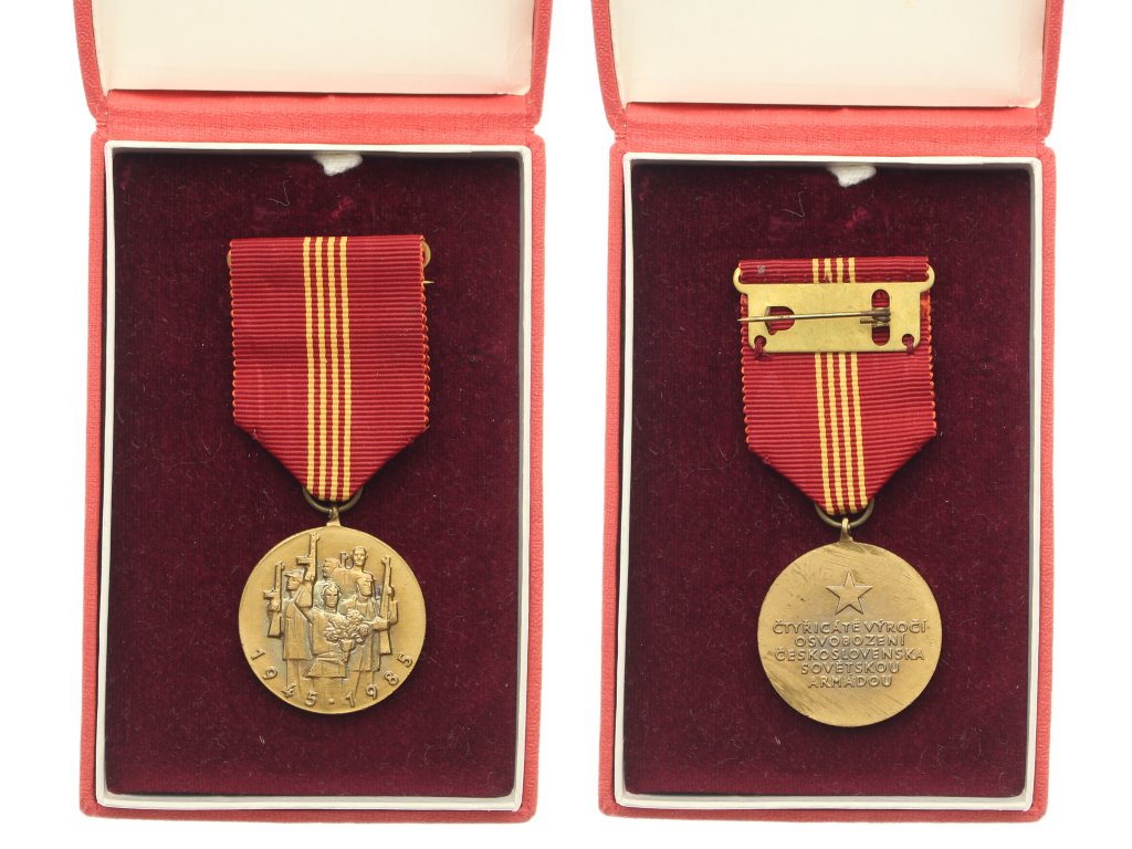 ČSSR, AE medaile Osvobození ČSSR, 1945-1985, stuha, etue, udělovací dekret