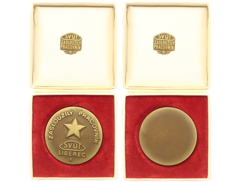 ČSSR, AE medaile Zasloužilý pracovník SVUT Liberec, průměr 50mm, krabička, nositelský odznáček, luxusní sběratelský stav...viz autentické foto