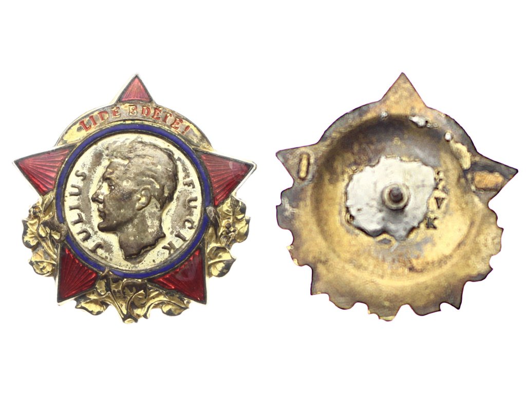 ČSSR, AE odznak Július Fučík, chybí šroub, rub reparován, smalty...viz autentické foto