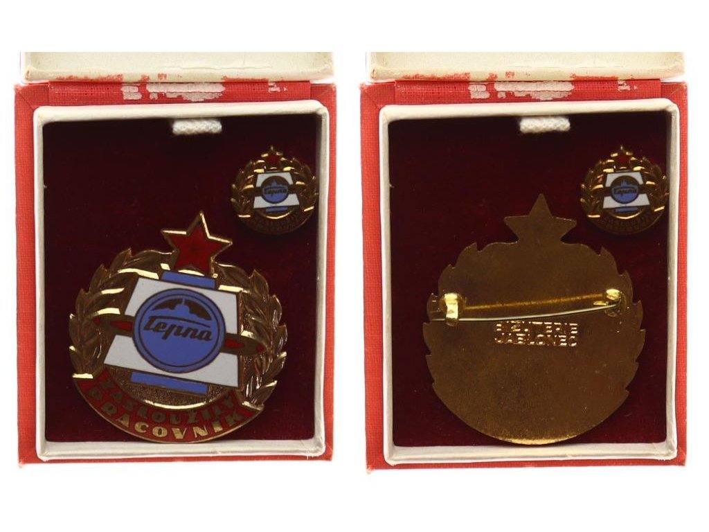 ČSSR, AE odznak Zasloužilý pracovník, pozlaceno, smalty, značeno výrobcem, etue, stav 0/0...viz autentické foto...