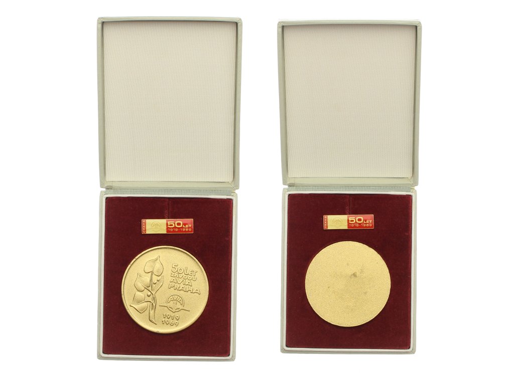 ČSSR, AE pamětní medaile 50.let závodu Avia Praha, průměr ca 45 mm, původní etue + odznáček, TOP stav