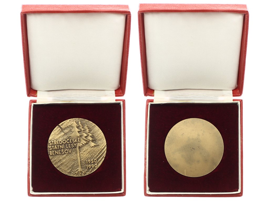 ČSSR, AE pamětní medaile Středočeské státní lesy Benešov, 1950/1990, průměr 60 mm, původní etue, luxusní sběratelská jakost