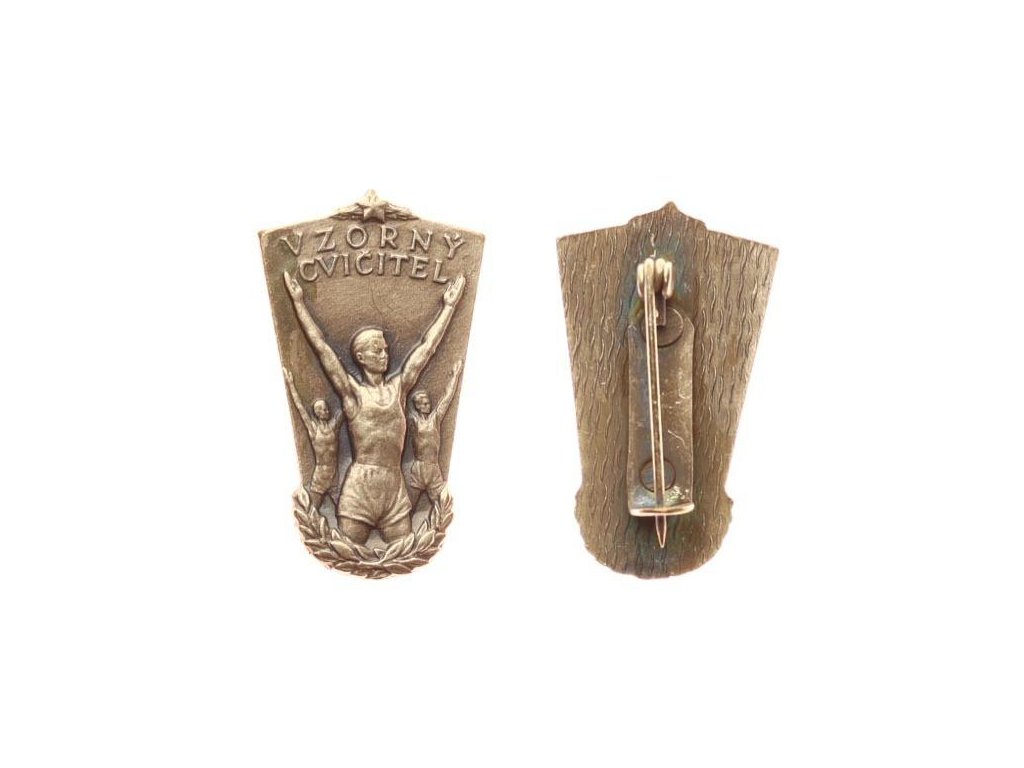 ČSSR, AE pamětní odznak Vzorný cvičitel, tombak, zavírací jehla, stav 1/1...viz autentické foto...