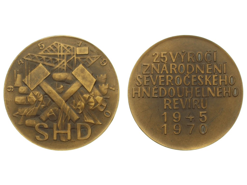 ČSSR, AE plaketa 25. SHD, hornictví, průměr 60mm, 1970, stav 1/1