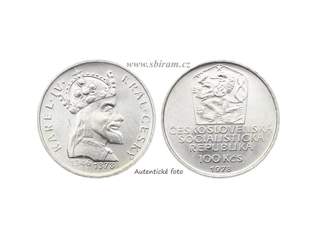 ČSSR, Ag (stříbrná) mince 100 Koruna 1978 - 600. výročí úmrtí Karla IV., stav -0/0-...viz autentické foto