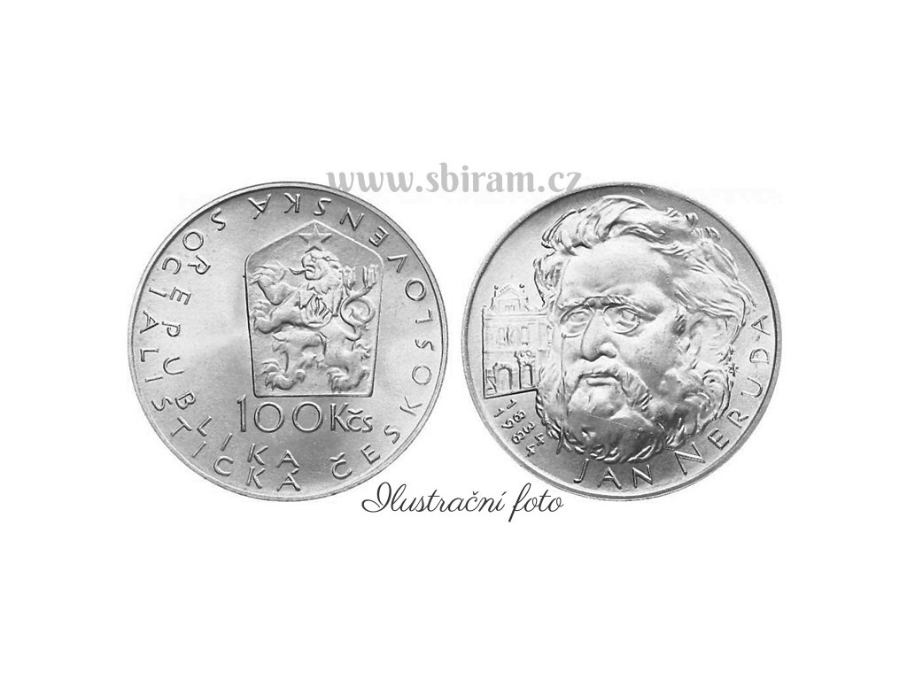 ČSSR, Ag (stříbrná) mince 100 Koruna 1984 - 150. výročí narození Jana Nerudy, ražební lesk, jemná patina, stav 0/0...viz ilustrační foto