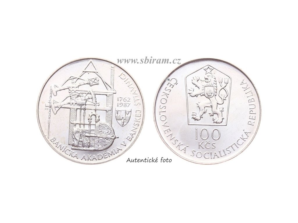 ČSSR, Ag (stříbrná) mince 100 Koruna 1987 - 225. výročí založení Báňské akademie v Banské Štiavnici, ražební lesk, jemná patina, kapsle, stav 0/0...viz autentické foto
