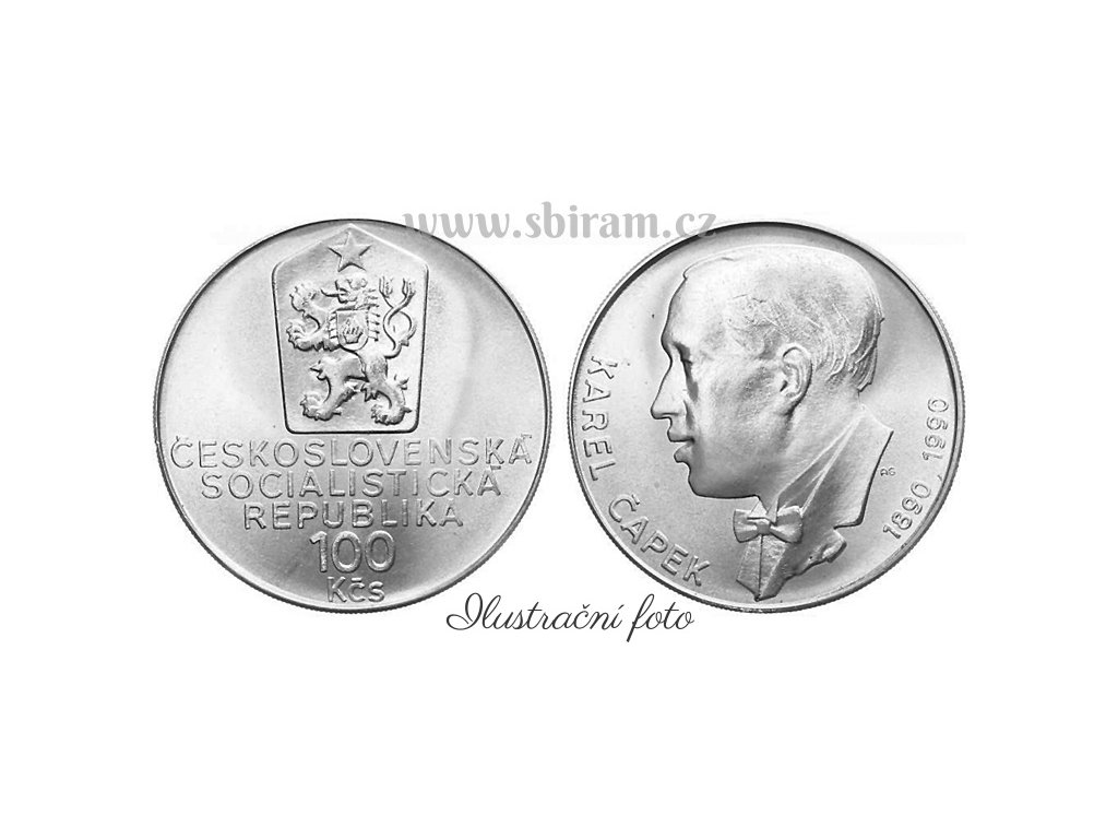ČSSR, mince 100 Koruna 1990 - 100. výročí narození Karla Čapka, stav 0/0