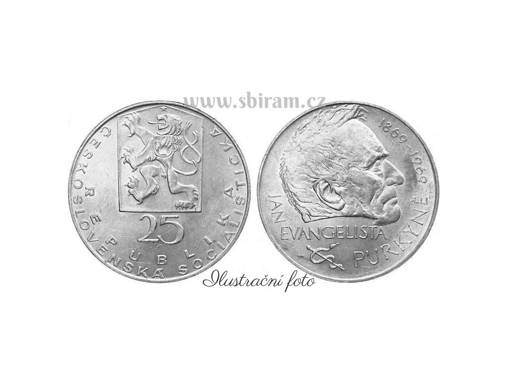 ČSSR, mince 25 Koruna 1969 - 100. výročí úmrtí J. E. Purkyně, stav 0/0