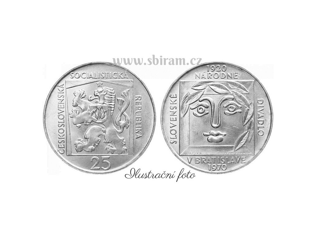 ČSSR, Ag (stříbrná) mince 25 Koruna 1970 - 50. výročí Slovenského národního divadla, ražební lesk, stav 0/0...viz ilustrační foto
