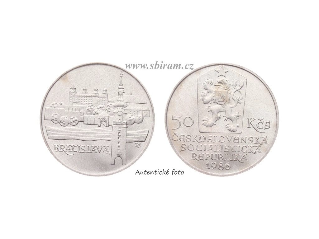 ČSSR, Ag (stříbrná) mince 50 Koruna 1986 - Městská památková rezervace Bratislava, ražební lesk, jemná patina, kapsle, stav 0/0...viz autentické foto