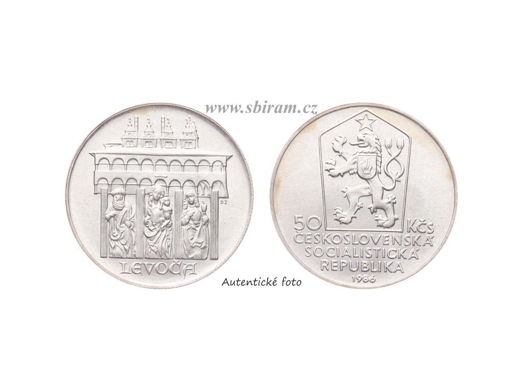 ČSSR, Ag (stříbrná) mince 50 Koruna 1986 - Městská památková rezervace Levoča, ražební lesk, jemná patina, kapsle, stav 0/0...viz autentické foto
