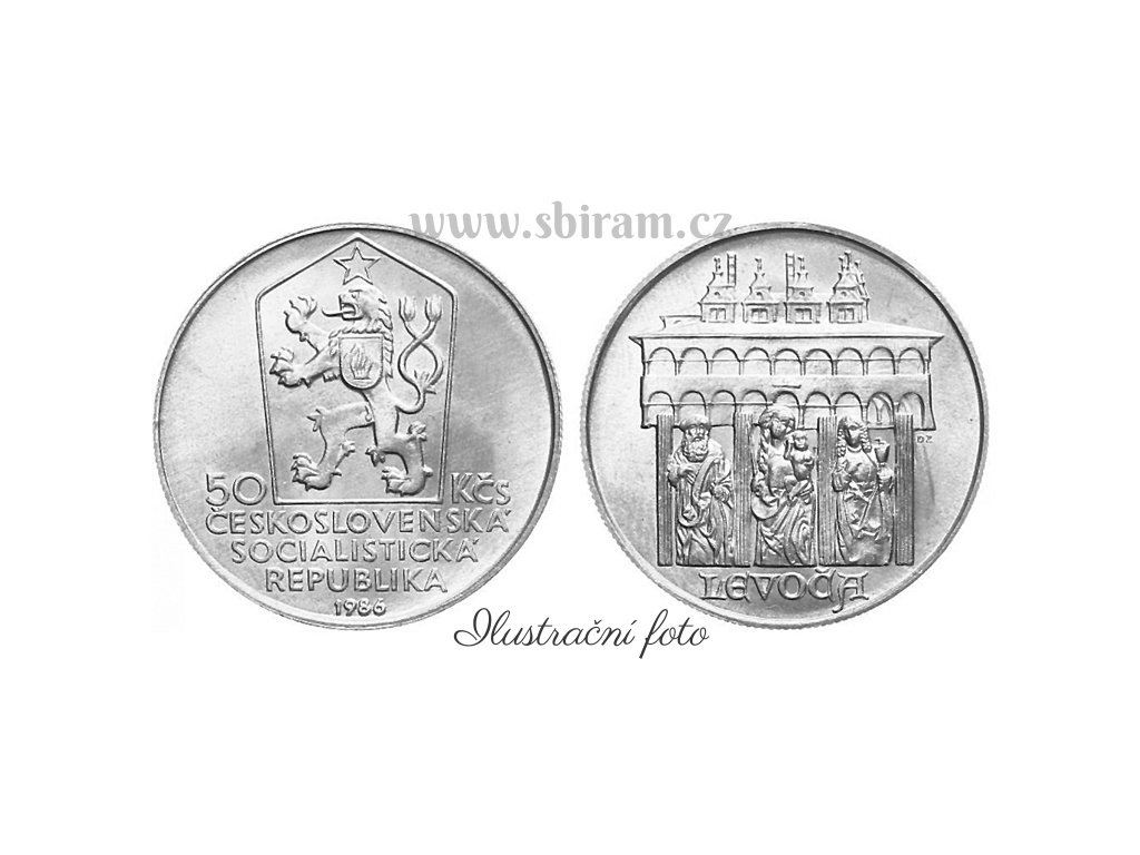 ČSSR, Ag (stříbrná) mince 50 Koruna 1986 - Městská památková rezervace Levoča, jemná patina, stav 0/0...viz ilustrační foto